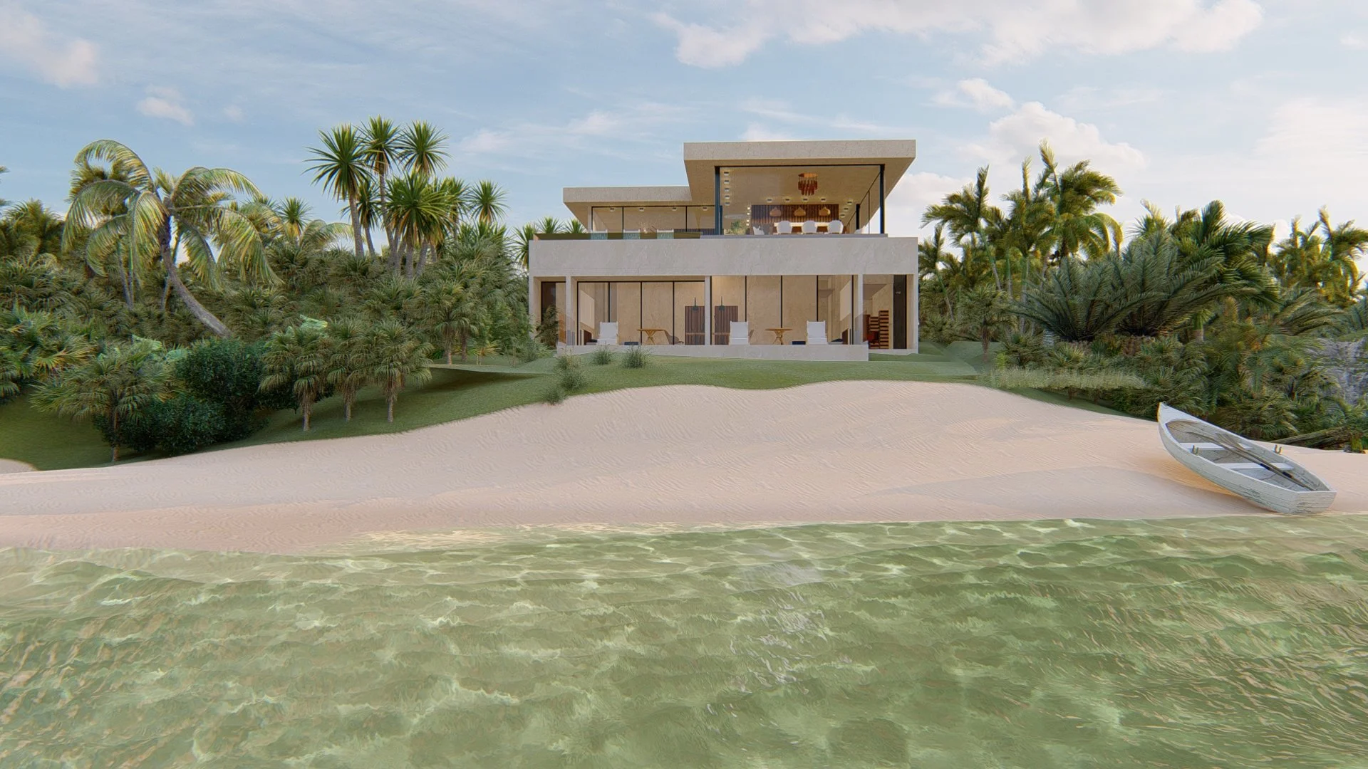 Casa vacacional en Isla Mujeres, Quintana Roo, México. La busqueda de espacios abiertos y vistas ininterrumpidas son la esencia del proyecto. El uso de materiales naturales y cristal también suma a la sensación de amplitud y serenidad.