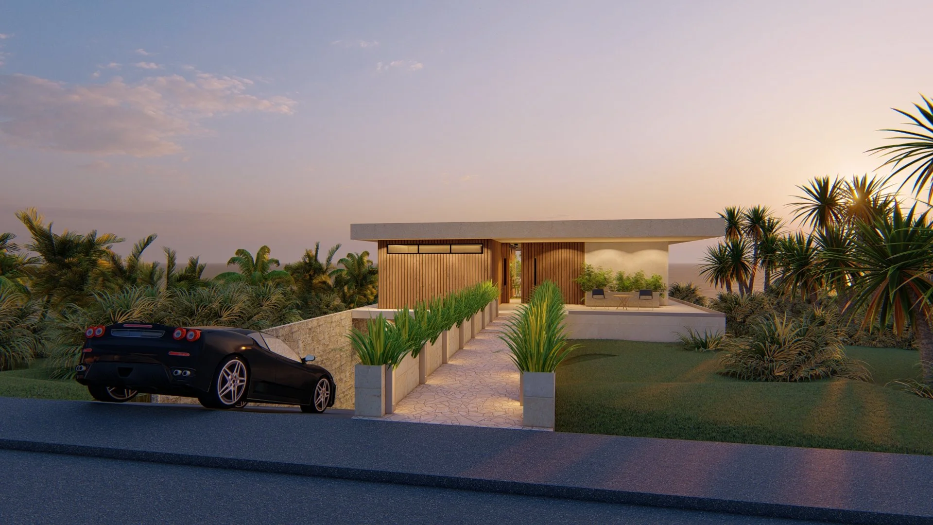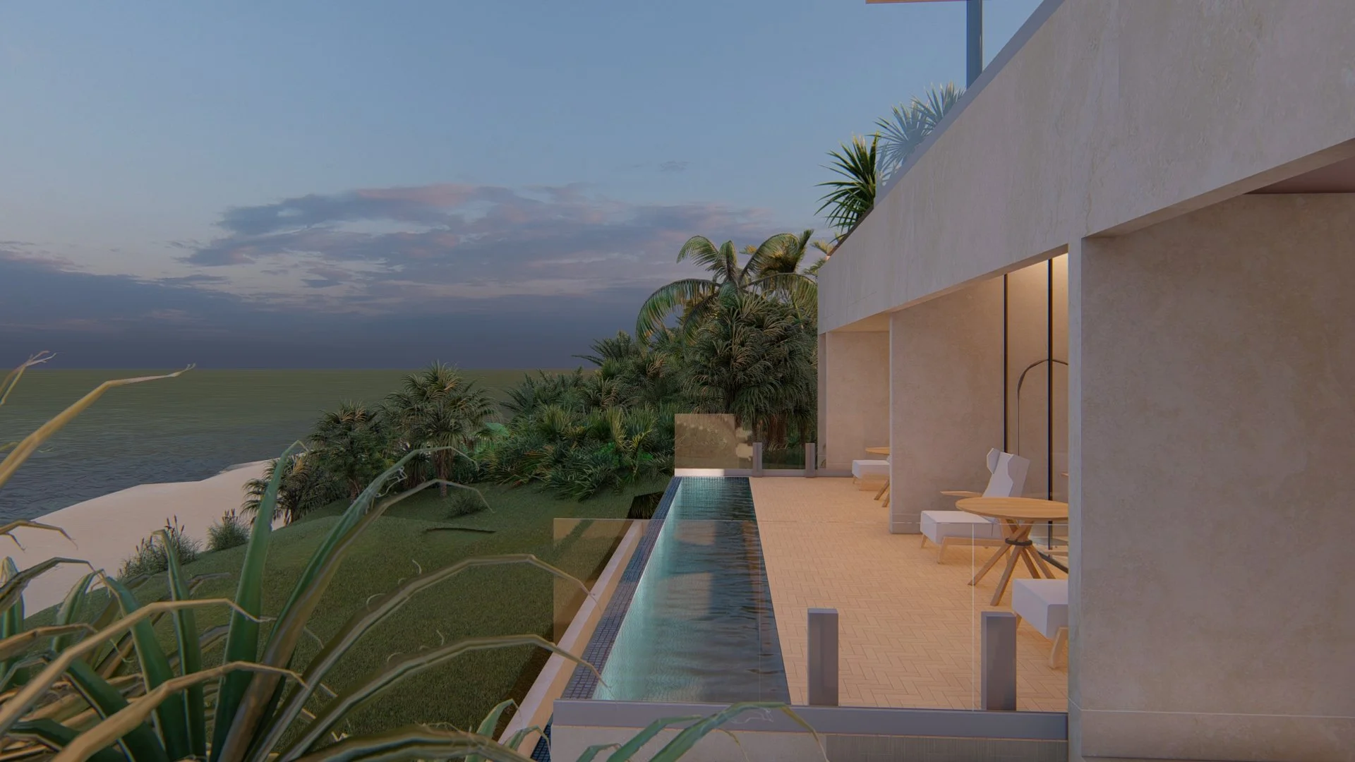 Formalmente, el proyecto se desarrolla en dos niveles escalonados debido a la topografía del terreno, abriendose de manera completa hacia el mar. Esto permitía también la opción de desligar los niveles y sus espacios para cumplir con el deseo del cliente de poder manejar el proyecto como casa vacacional de renta.