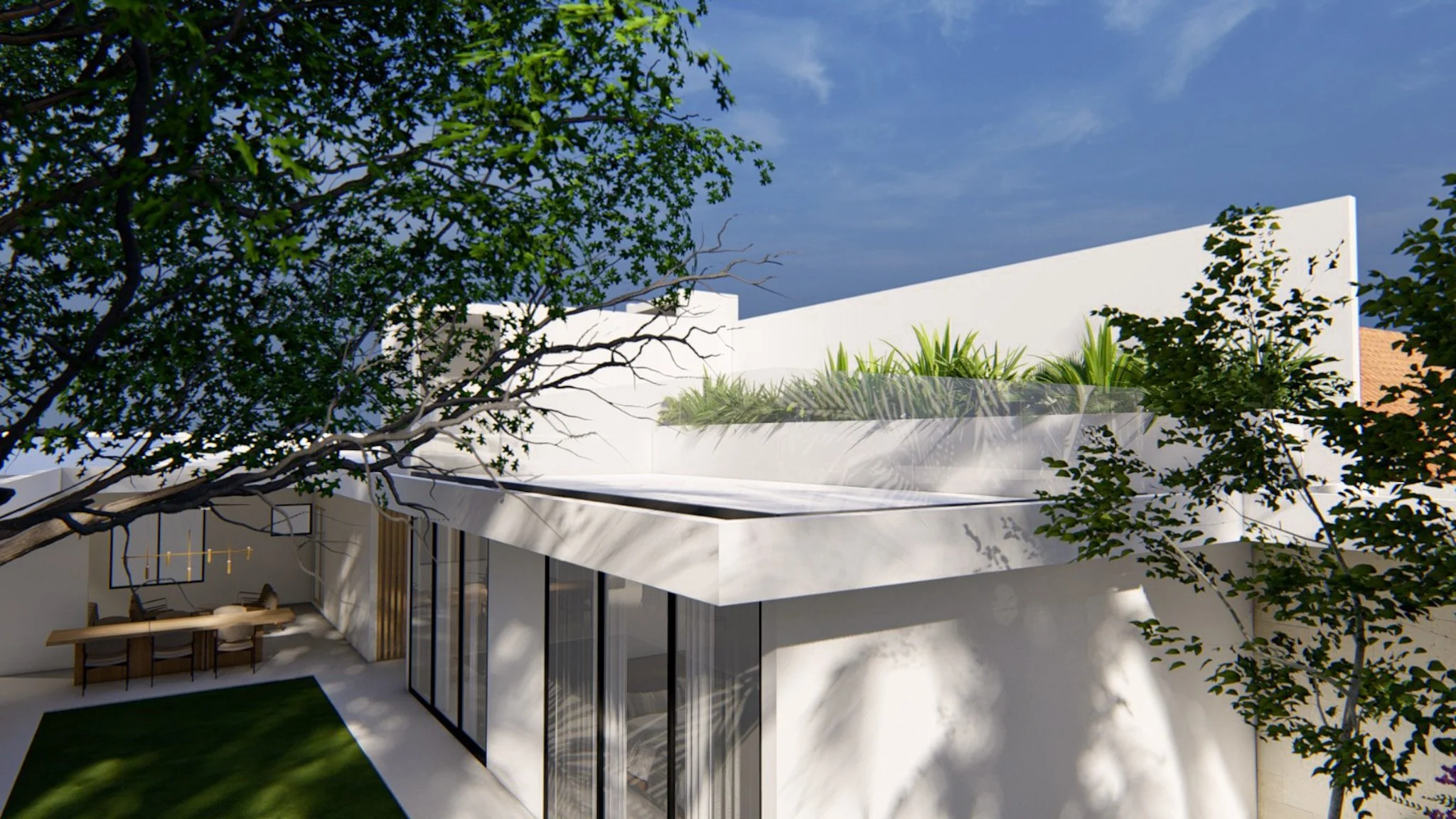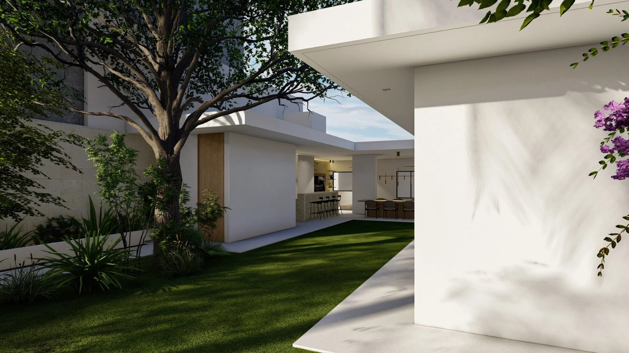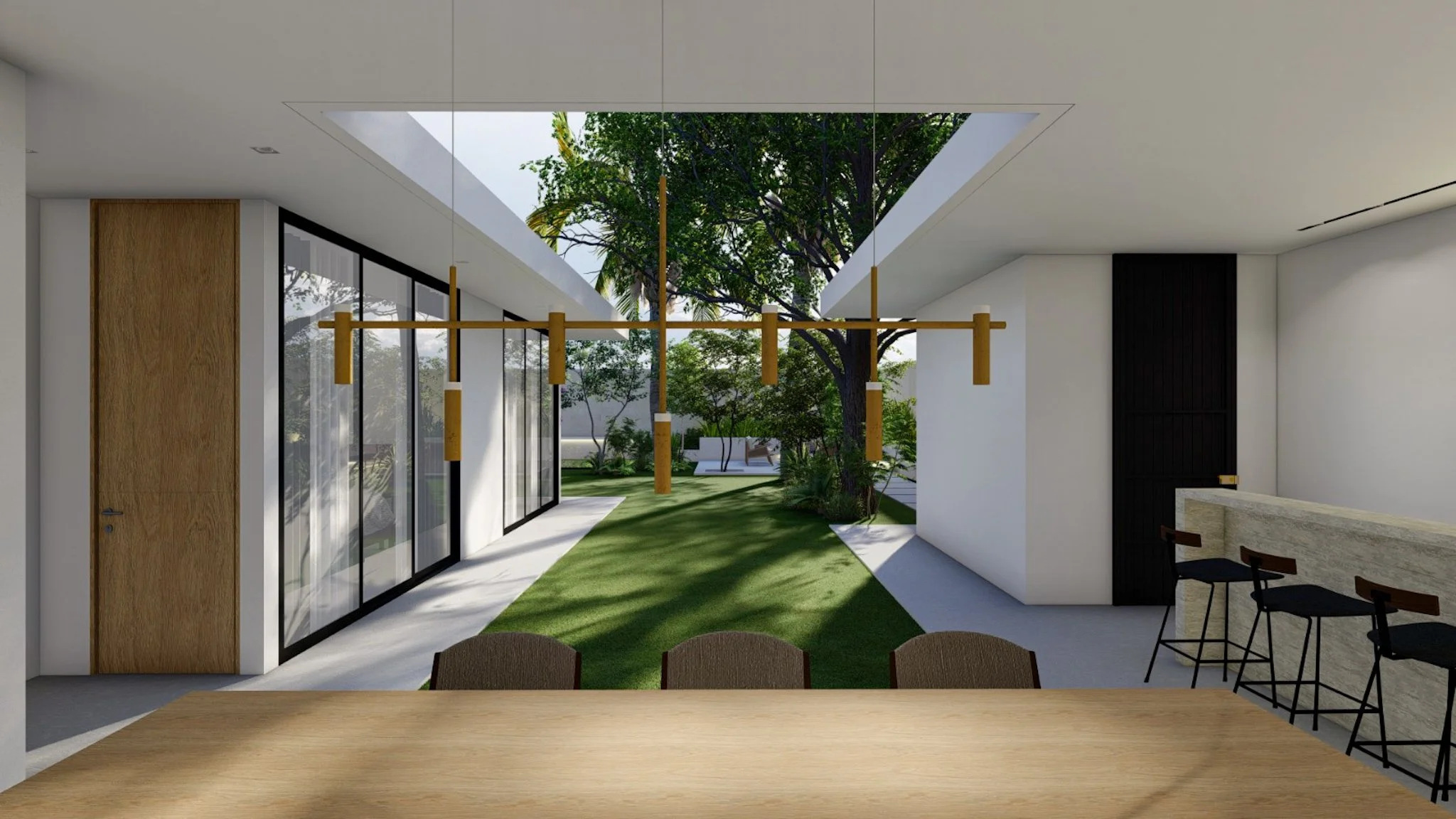 Remodelación de casa unifamiliar en La Ceiba, Honduras. El corazón del proyecto está en recuperar la parte posterior del terreno donde se sitúa la casa a través de un diseño moderno, elegante y abierto, que conecta el hogar con el exterior y genera un ambiente de paz y confort.